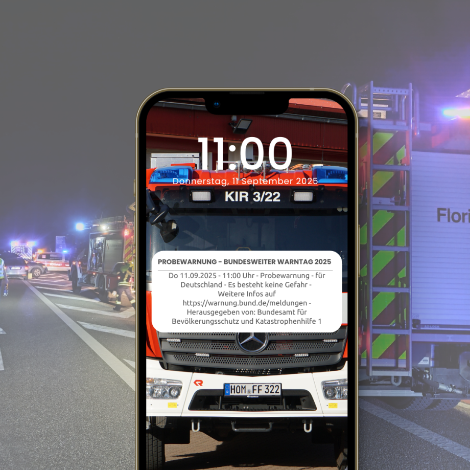 Der Bundesweite Warntag findet in diesem Jahr am 11. September statt. Dabei werden viele Warnkanäle erprobt, mit denen die Menschen in Deutschland vor Gefahren gewarnt werden. Zu den Warnkanälen zählen unter anderem Radio und Fernsehen, Warn- Apps wie NINA, Stadtinformationstafeln, Sirenen, Lautsprecherwagen, Infosysteme der Deutschen Bahn und der Mobilfunkdienst Cell Broadcast.