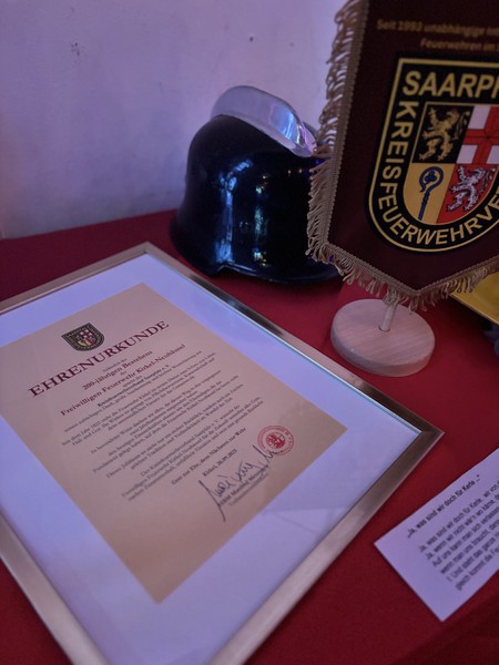 Am Freitagabend kamen zahlreiche Gäste aus Politik, Gesellschaft und Feuerwehrwesen zum Festakt zusammen. Neben Vertretern der lokalen Vereine und der Partnerfeuerwehr Heidelberg nahmen auch Landrat Frank John, Bürgermeister Dominik Hochlenert und der Landesbrandinspekteur Timo Meyer an der Feier teil. Besonders bewegt zeigte sich die Versammlung über die Anwesenheit von Roland Tschierschke, Ehrenlöschbezirksführer und mit 99 Jahren ältester Kamerad der Alterswehr. In seiner Rede würdigte Löschbezirksführer Thorsten Klaus die Entwicklung der Feuerwehr von ihren Anfängen als Pflichtfeuerwehr im frühen 19. Jahrhundert bis hin zur modernen Einsatzorganisation. Schon 1825 weisen Gemeinderechnungen Ausgaben für Feuerlöschgeräte aus, womit die Anfänge des organisierten Brandschutzes in Kirkel belegt sind. 1926 erfolgte schließlich die Gründung der Freiwilligen Feuerwehr, die bis heute das Fundament des Einsatzgeschehens bildet.