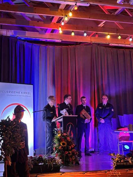 Löschbezirksführer Thorsten Klaus begrüßte die Kameradinnen und Kameraden der aktiven Wehr des Löschbezirks sowie der Seniorenabteilung, Bürgermeister Dominik Hochlenert als Chef der Wehr sowie den stellvertretenden Wehrführer Thomas Keßler. Anwesend begrüßte er den Brandinspekteur des Saarpfalzkreises Stefan Schrögler, denBrandinspekteur a.D. Uwe Wagner, den Landesbrandinspekteur Timo Meyer, den Vorsitzenden des Kreisfeuerwehrverbandes Manfred Metzinger, sowie den Vorsitzenden des Fördervereins der Feuerwehr Kirkel, Löschbezirk Kirkel-Neuhäusel e.V., Manfred Kolb. Die Partner-Feuerwehr Heidelberg ließ sich aufgrund interner Veranstaltungen entschuldigen.