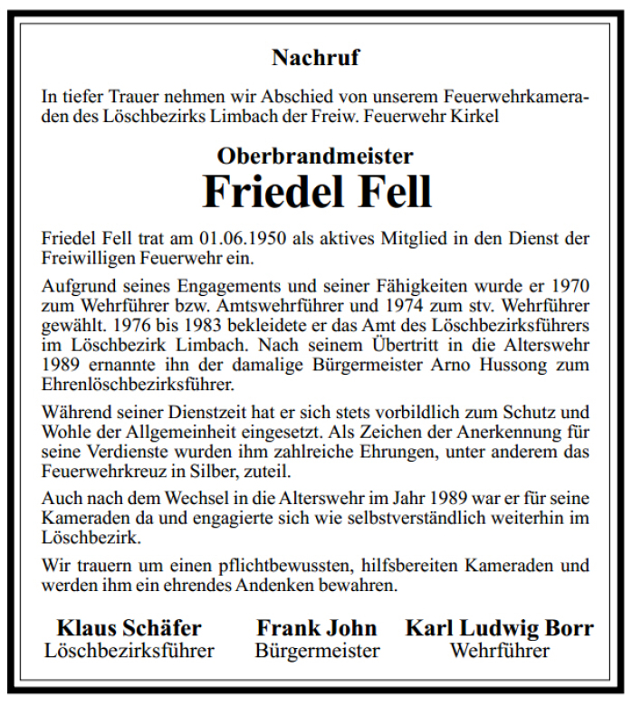 In tiefer Trauer nimmt die Feuerwehr Kirkel Abschied von ihrem verstorbenen Kameraden Oberbrandmeister Christof Weis, der im Alter von 64 Jahren von uns gegangen ist.