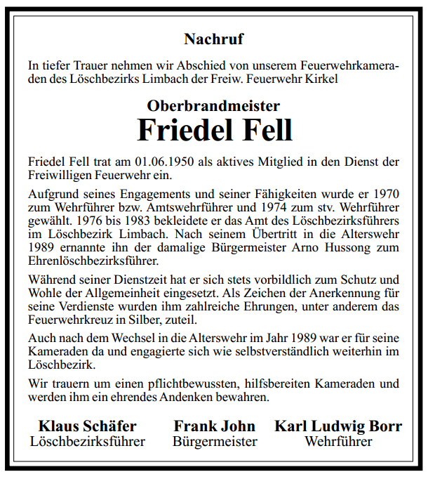 des Löschbezirks Limbach und der Freiwilligen Feuerwehr Kirkel